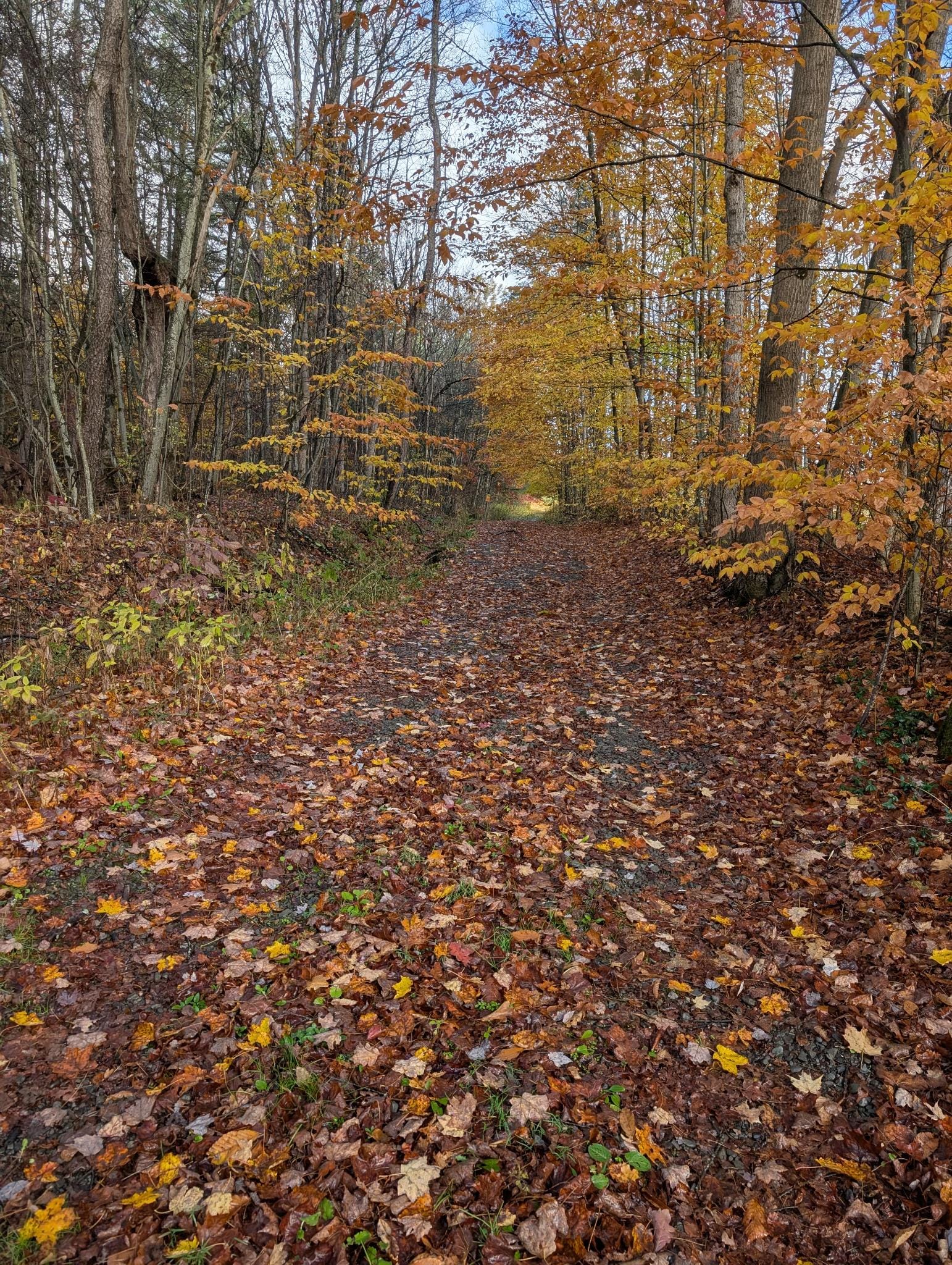 Now that I was fed and my chores were done, it was time to go for a hike. The cabin's driveway continues up the hillside for about 0.5 miles or so, turns into a walking trail through some fields—presumably left by hunters—then goes back into the forest. It was a pretty intense uphill hike most of the way out. After about a mile, the trail faded into general wilderness (somewhere around here), and I was tired, so I turned around for the much easier downhill walk back to the cabin.