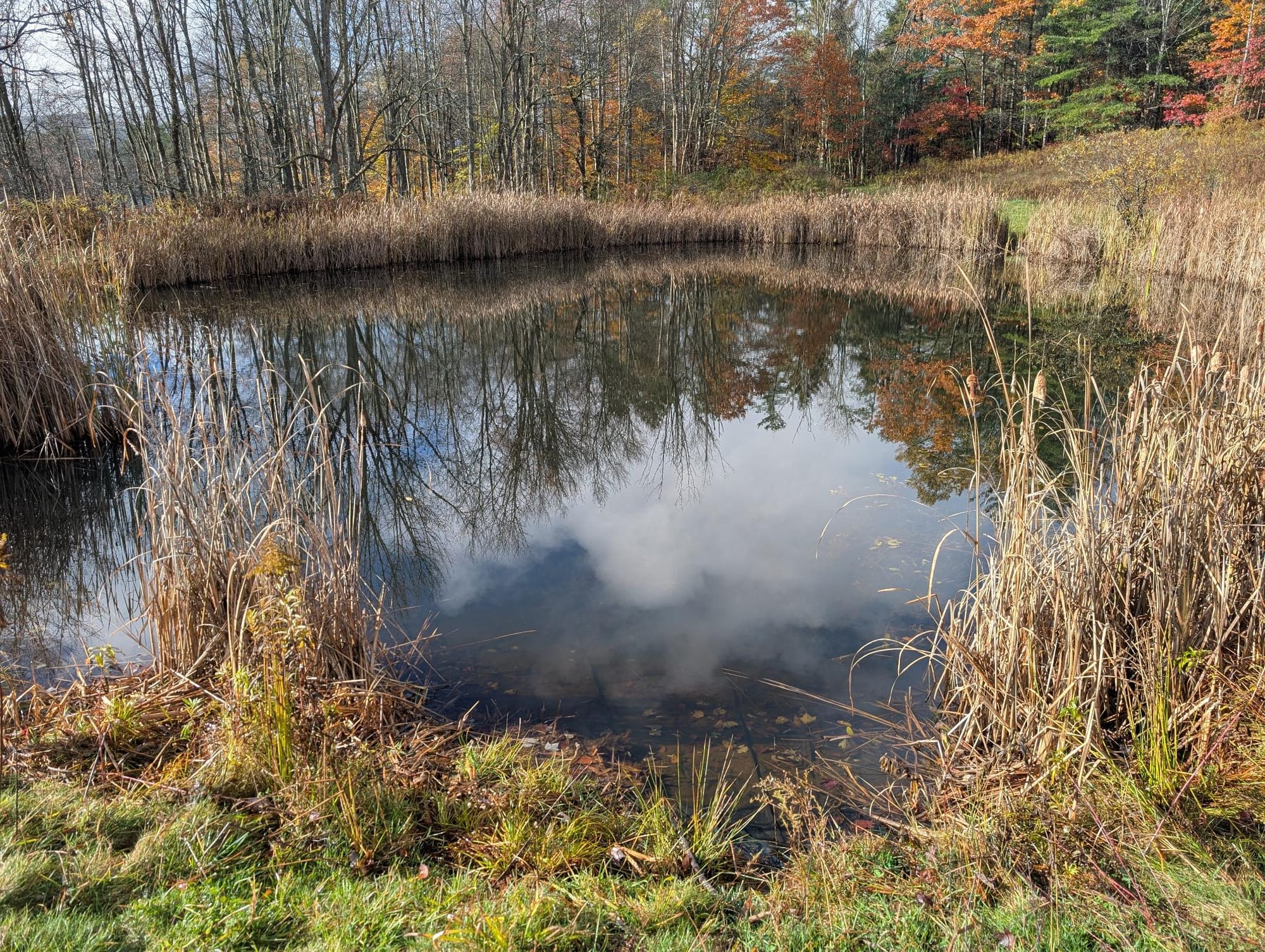 I was up around 8:00 AM. The fire had gone out during the night again, so it was very cold in the cabin; colder than the night before. I quickly got another fire going and was cooking by 9:00. I had the same meal as Saturday: tea, breakfast sandwiches, and home fries, which were much better than Saturday's attempt. Then started the sad task of packing up. After loading the car, locking up the cabin, and notifying the host that I was leaving. I tuned into the Bills/Panthers game on my phone and drove home.